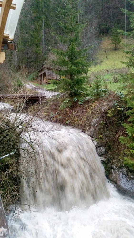 Po ogledu razstav v Centru Rinka smo bili prijetno presenečeni in na deževno vreme smo kar malo pozabili. So se pa počasi že začeli oglašati naši želodci. Avtobus nas je odpeljal proti Logarski dolini. Ob poti smo opazili veliko število hudournikov, ki so se izlivali v deročo Savinjo. Ob prihodu v dolino nas je presenetil prvi pogled nanjo. Ta se je močno razlikoval od tistega z razglednic in prospektov. Potok Črne se je razlival po travnikih, kjer so nastajala manjša jezera, z bregov na obeh straneh doline so padali številni slapovi. Resda ima Logarska dolina poleg znamenitega slapa Rinke še okoli dvajset drugih slapov, ampak zdi se nam, da smo jih videli precej več. Za kratek čas smo se ustavili pri hotelu Plesnik in kar iz avtobusa opazovali slap Palenk, ki je bil tokrat res mogočen.