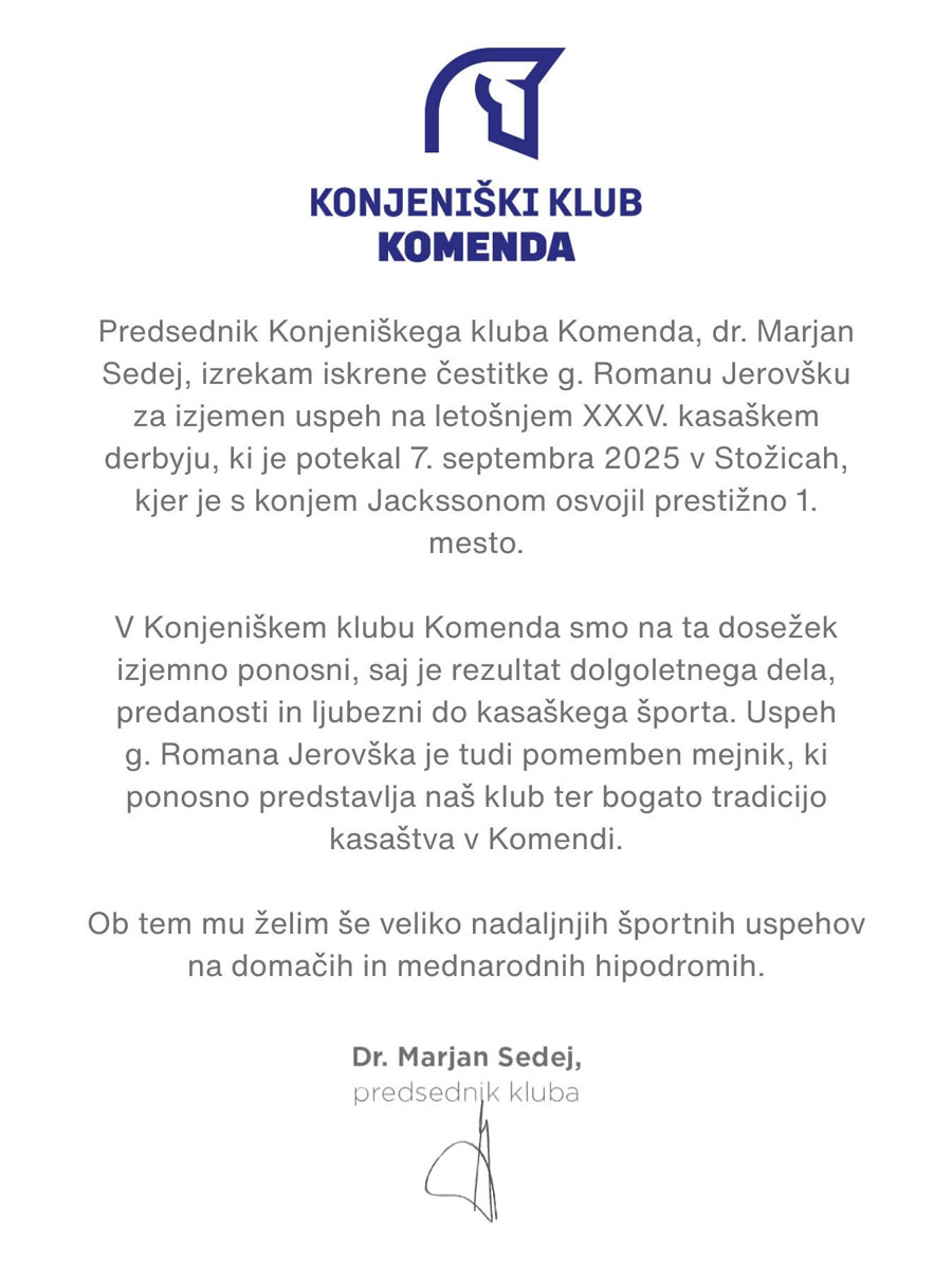 Čestitke predsednika kluba g. Romanu Jerovšku