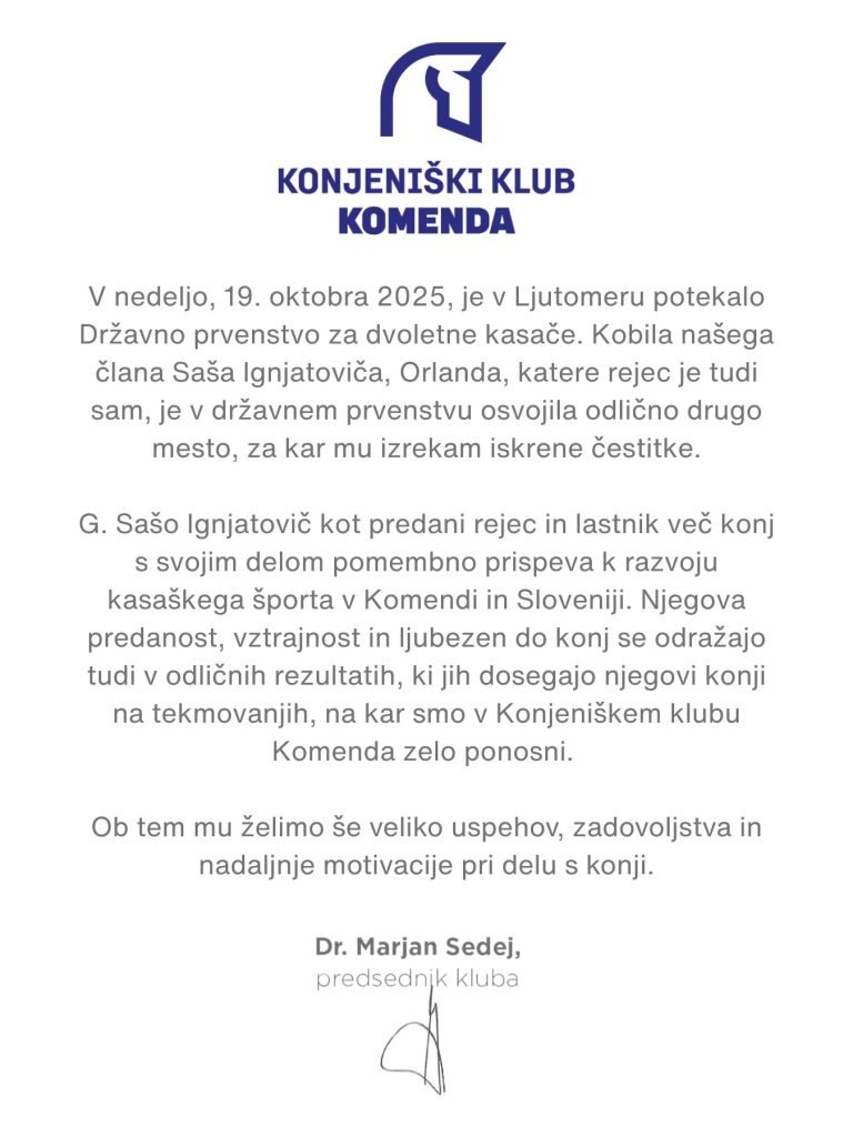 Čestitke predsednika kluba g. Sašu Ignjatoviču.